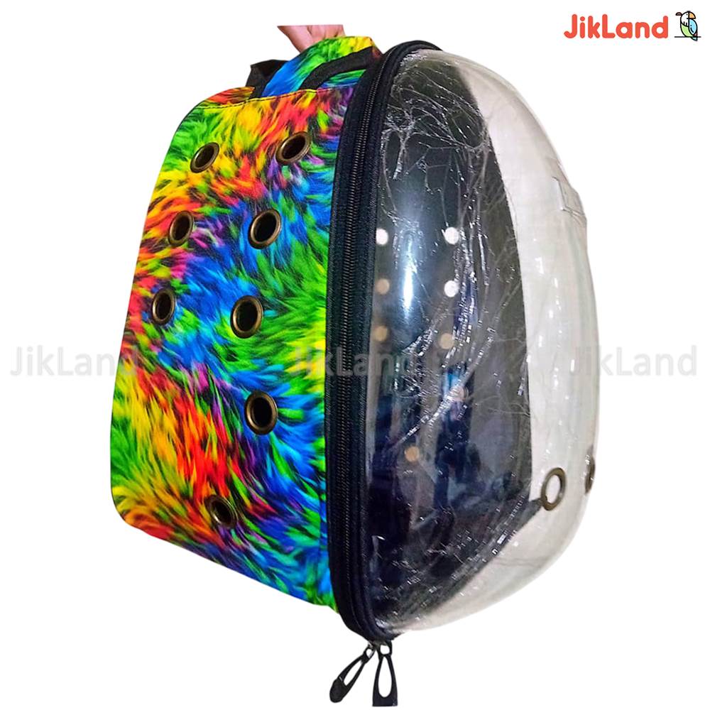 در قسمت جلوی این کوله پشتی حمل پرنده، یک طلق حبابی شفاف و مقاوم کار شده که: